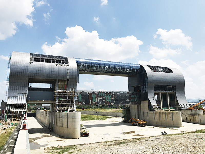 江能公司同有關(guān)單位的配合創(chuàng)作了巨幅彩色金屬浮雕作品,以焊接型式固定在閘門(mén)上游側(cè)整體面板上,使閘門(mén)成為有觀賞價(jià)值的景觀型閘門(mén),這在國(guó)內(nèi)尚屬首次。