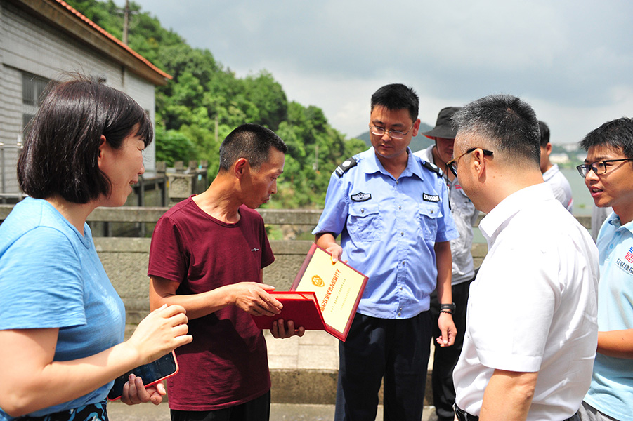 為青山水庫“見義勇為”的應(yīng)忠華頒發(fā)證書