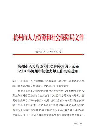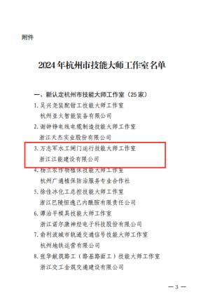 近日,杭州市人力資源和社會(huì)保障局公布了2024年度杭州市技能大師工作室名單。經(jīng)單位申報(bào)、區(qū)縣(市)推薦、專家評審及公示等程序,我公司由萬志軍同志領(lǐng)銜的水工閘門運(yùn)行工技能大師工作室成功認(rèn)定為“杭州市技能大師工作室”。